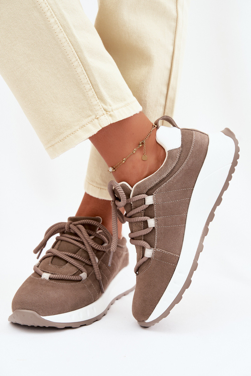 Skórzane Zamszowe Sneakersy Damskie Brązowe Bemela