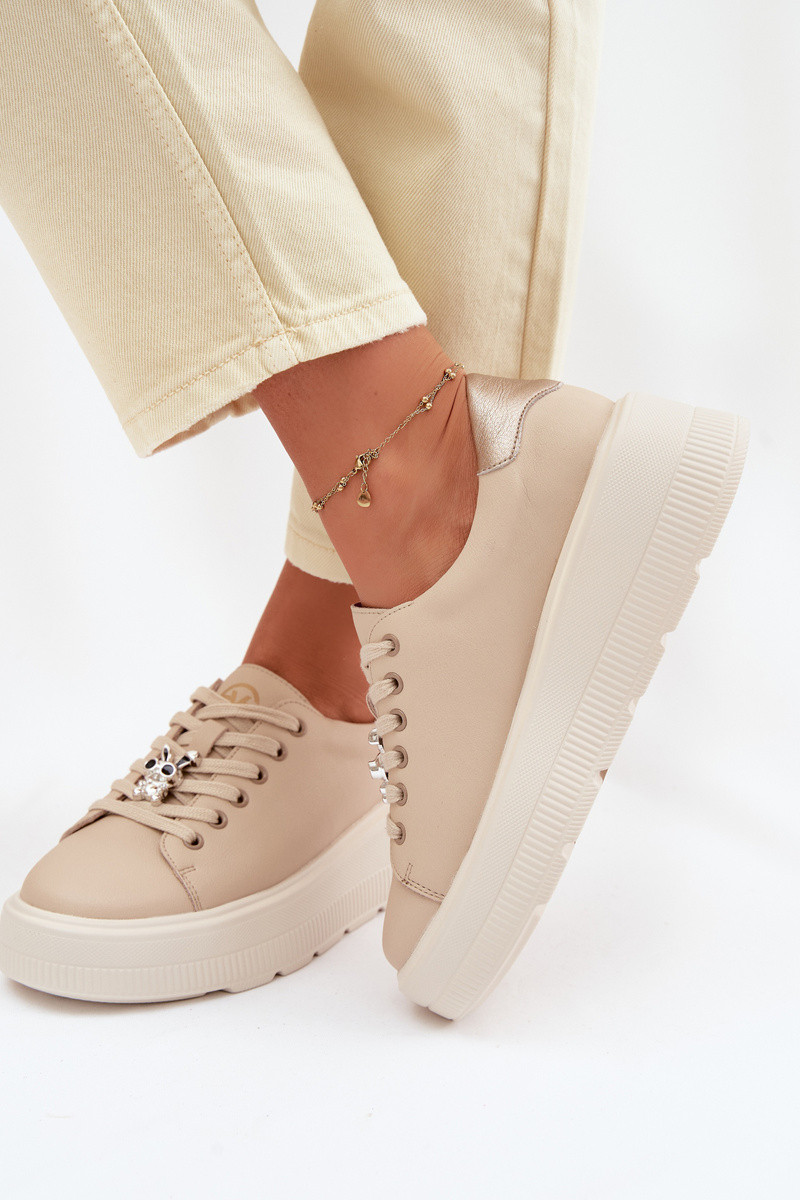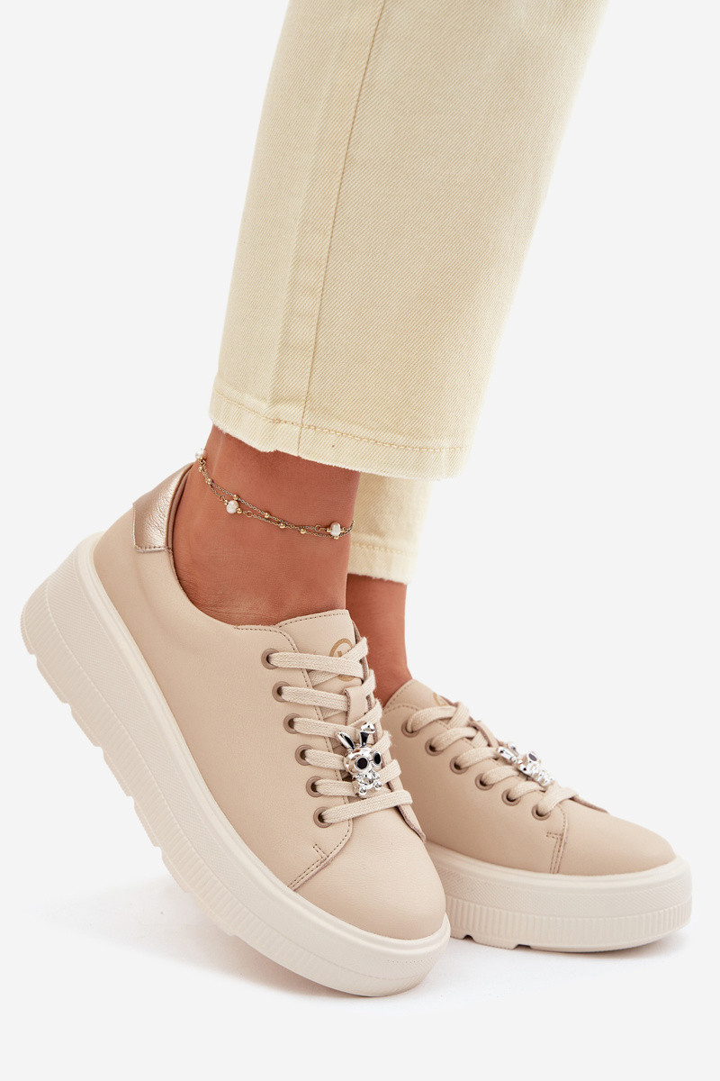 Skórzane Sneakersy Damskie Na PlatformiewithPrzypinką Vinceza 39973 Białe