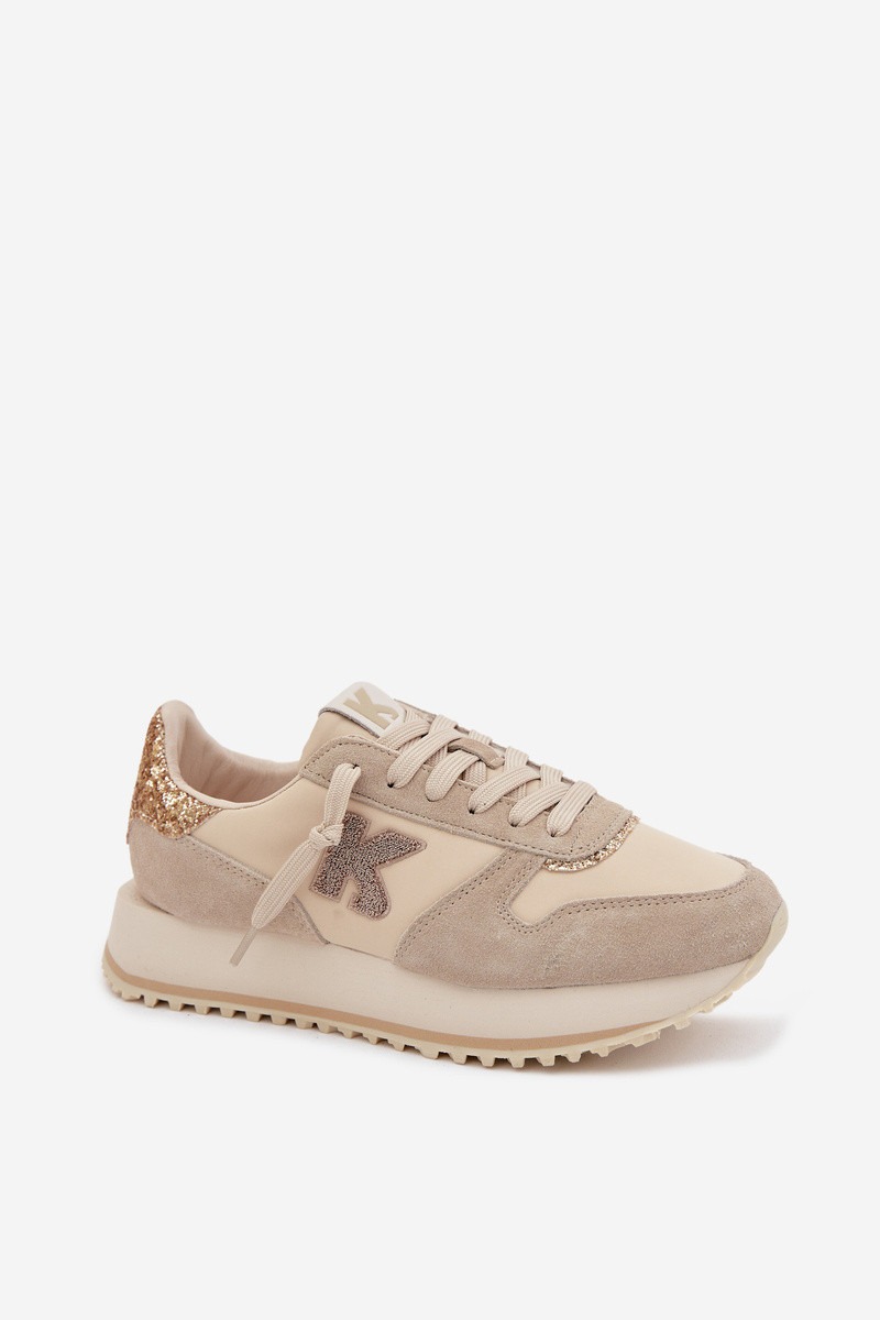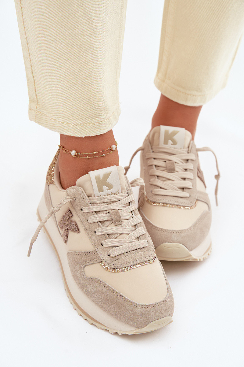 Skórzane Zamszowe Sneakersy Damskie Na Platformie Kobbo 100103 Beżowe