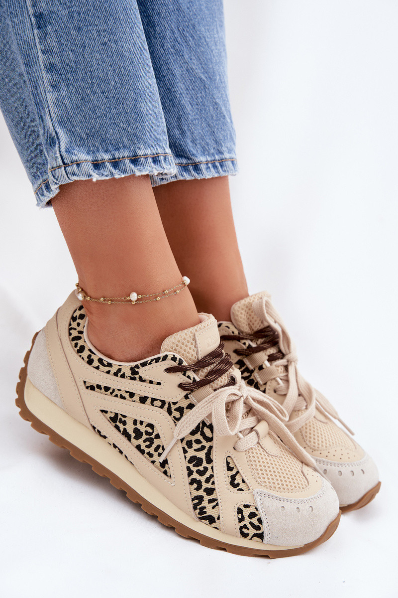 Skórzane Zamszowe Sneakersy Damskie Big Star TT274549 Beżowe