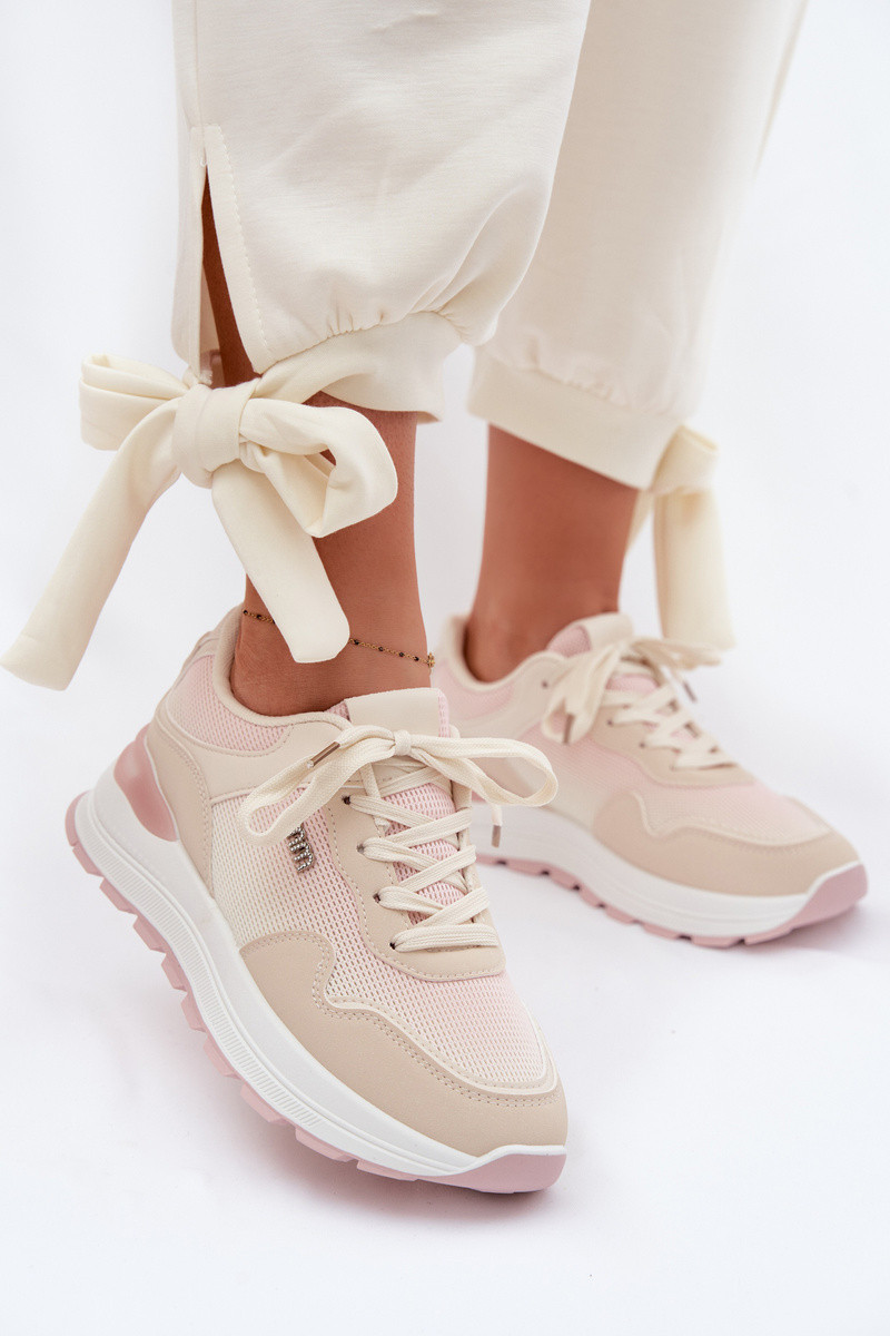 Sneakersy Damskie Na Platformie Brązowe Lelmira