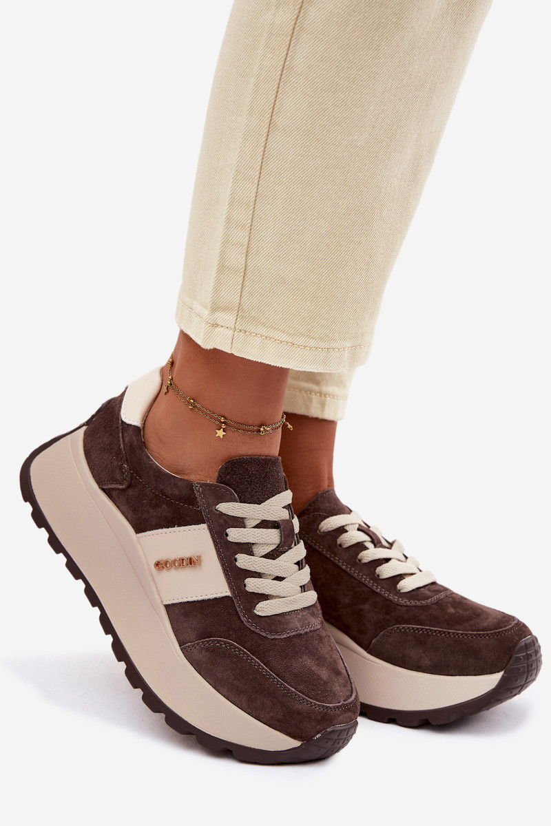 Sneakersy Damskie Na PlatformiewithNaturalnego Zamszu Czekoladowe Rosinae