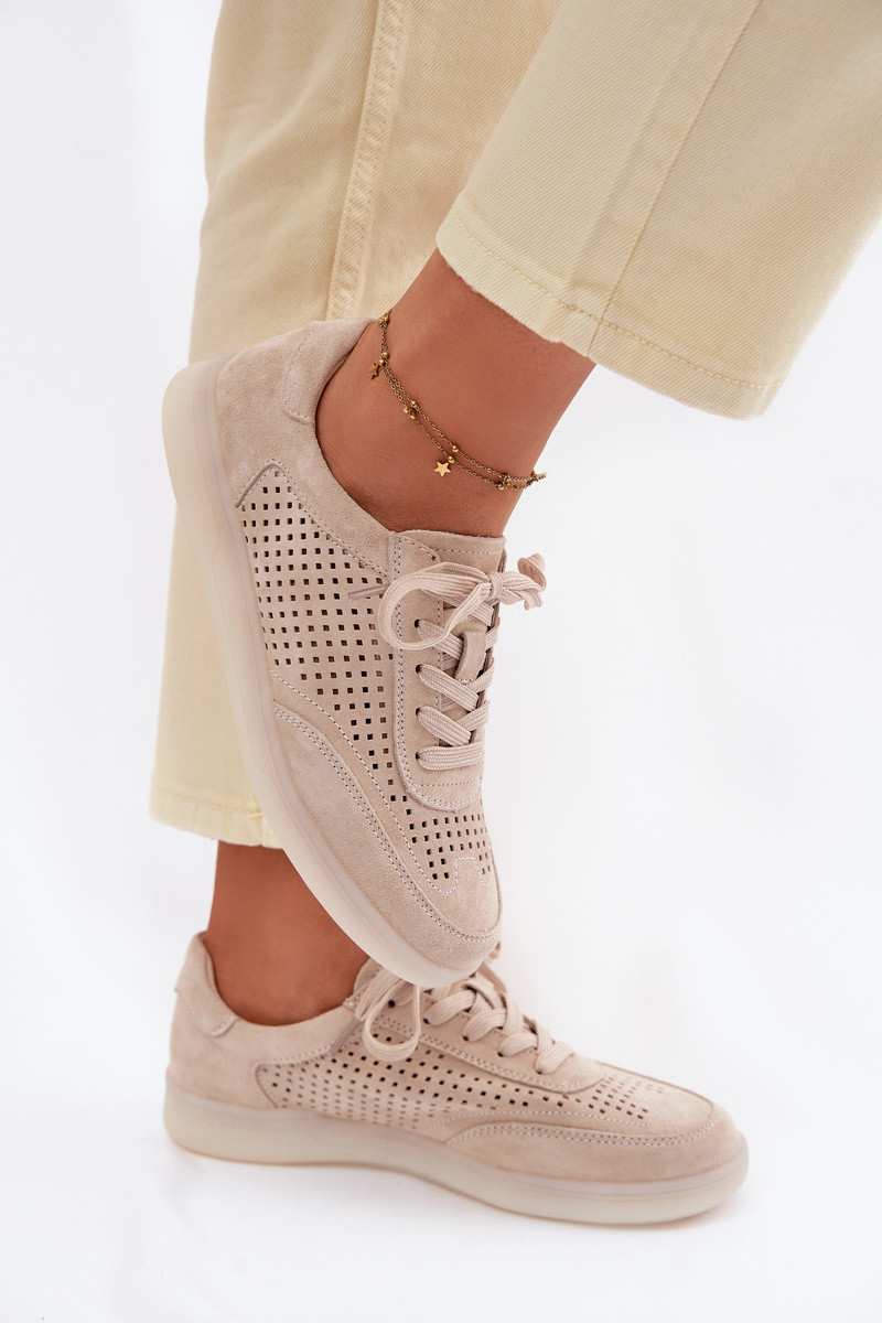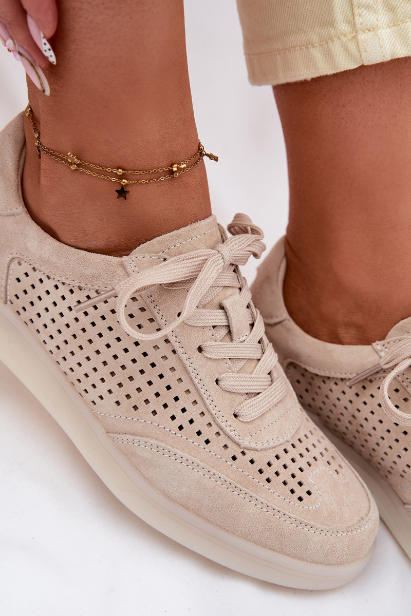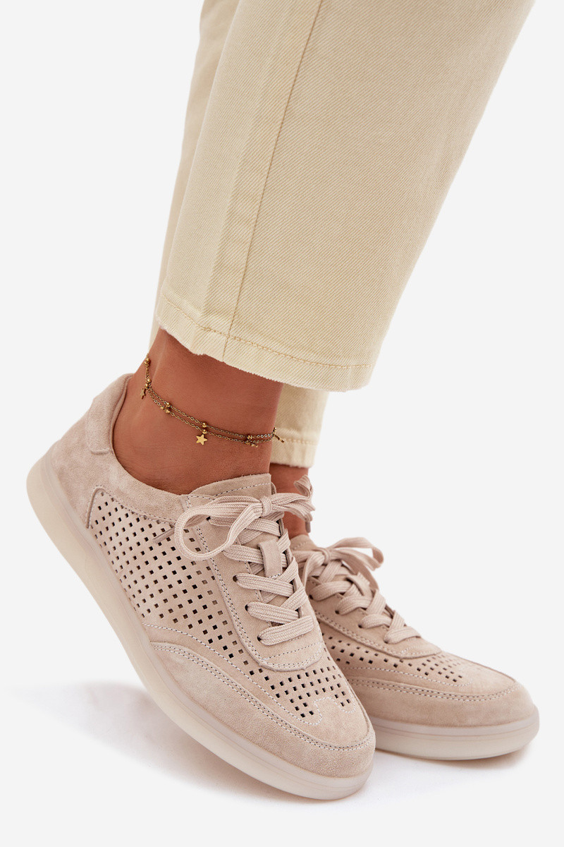 Skórzane Zamszowe Sneakersy Damskie Ażurowe Różowe Almora