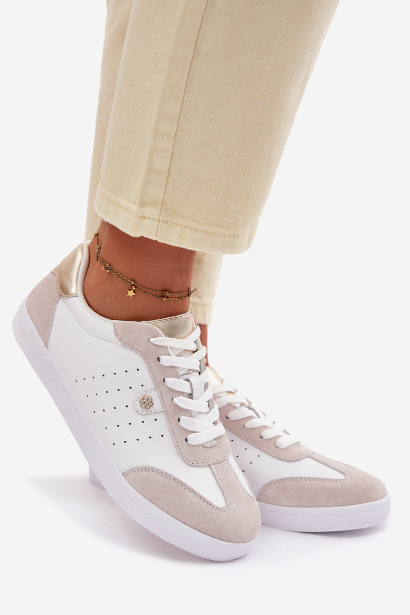 Sneakersy DamskiewithNaturalnej Skóry S.Barski LR61-7091 Beżowe
