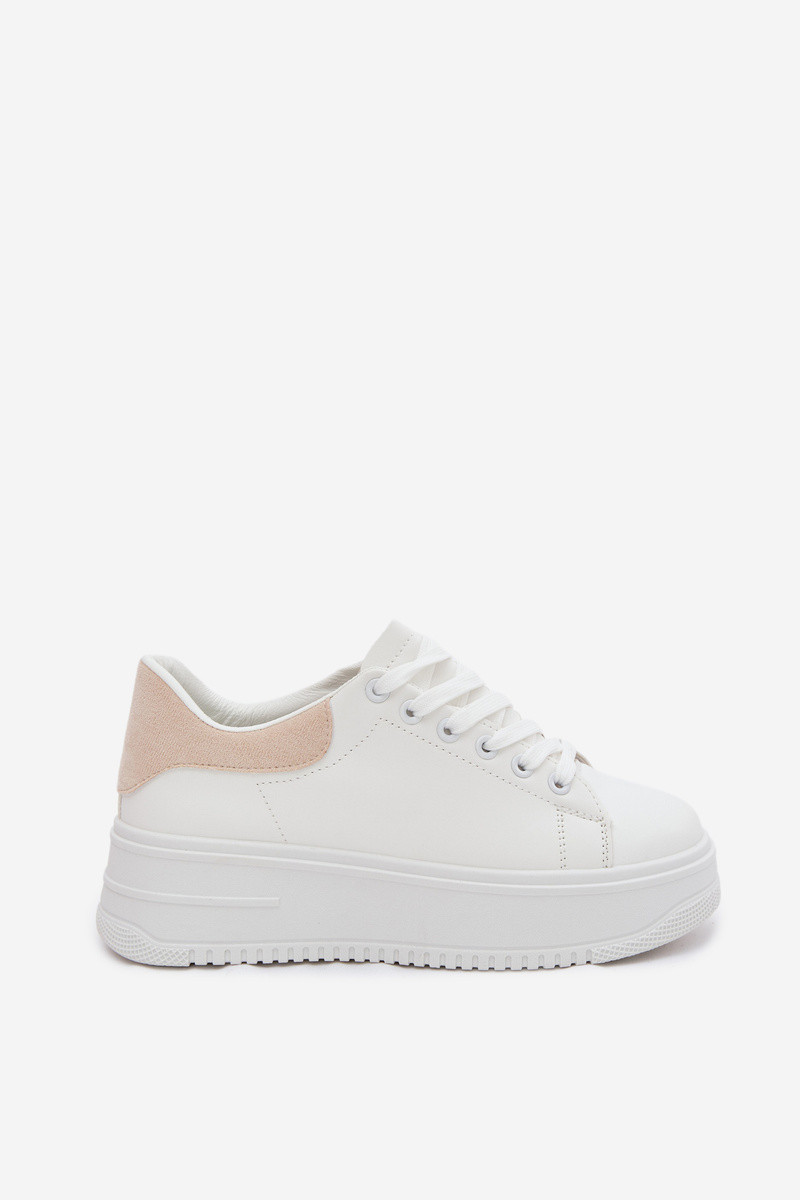 Białe i beżowe sneakersy damskie z platformą z sztucznej skóry Calinae
