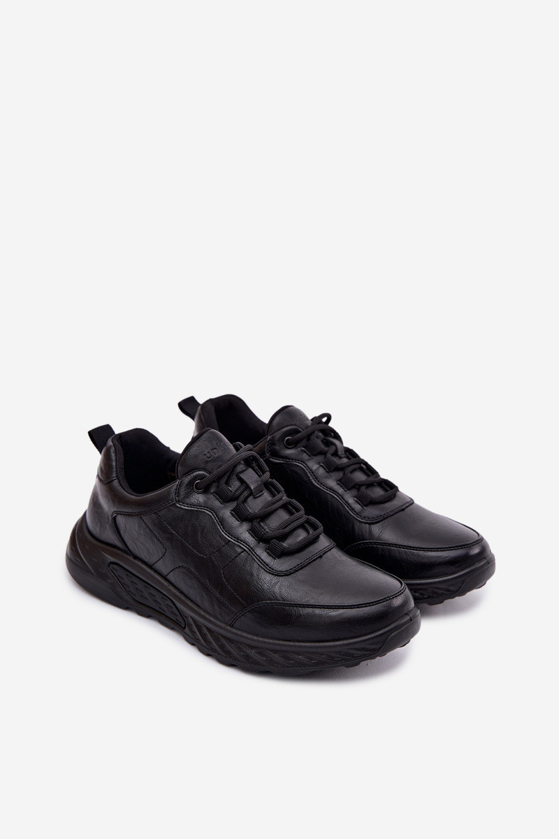 Sneakersy Męskie Eko Skórzane Czarne Torven